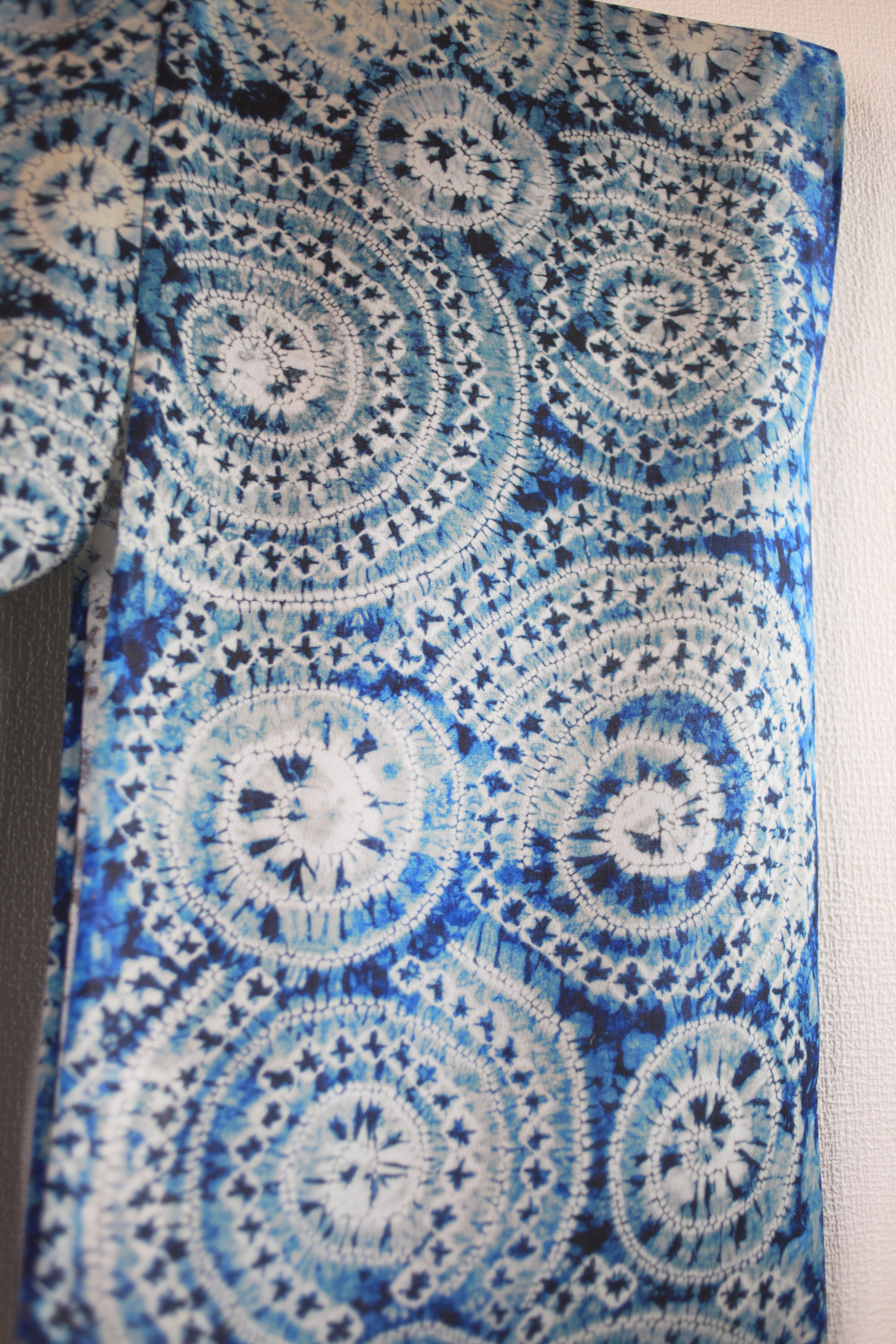 【淡色バージョンは絞り柄がレースのよう】超絶技巧の絞り柄をプリントで復刻しました。本来の絞りの技術で作成したかったのですが、こちらの柄は美術館級の超絶技巧のため、普段で着られる価格にするためにプリントを採用しました。それでも最新スキャナーとプリンターでなければ、この馴染み具合は再現できません。